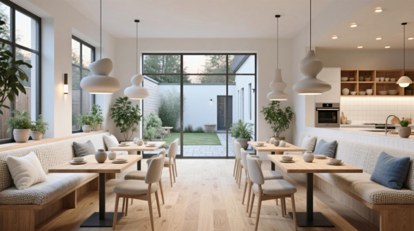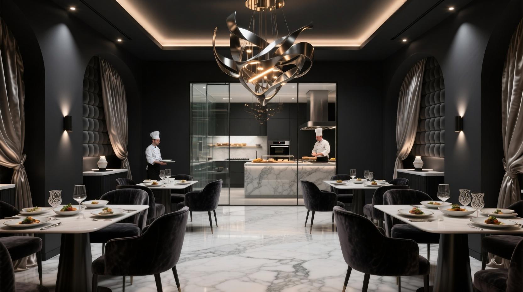 طراحی داخلی رستوران بیش از زیبایی ظاهری است؛ هدف ایجاد تجربهٔ مشتریمحور، انتقال هویت برند و فراهم کردن فضایی کارآمد برای خدمتدهی و آشپزی است.چیدمان فضای نشستن، مسیرهای سرو و آشپزخانهٔ باز یا بسته باید بهگونهای طراحی شود که عملکرد کارکنان بهینه و تجربه میهمانان روان و دلپذیر باشد.پالت رنگی، نورپردازی و جنس متریال (کف، دیوار، مبلمان و منسوجات) باید با مفهومی یکپارچه هماهنگ شود تا جو، راحتی و خاطرهسازی در رستوران تقویت شود.در نظر گرفتن آکوستیک مناسب، نور قابل تنظیم برای حالات مختلف (ناهار، شام، رویداد ویژه) و خلق نقاط کانونی بصری به ماندگاری تجربه کمک میکند.راهکارهای بهرهور مانند مبلمان مقاوم و قابل نگهداری، مسیرهای اضطراری و تهویهٔ مناسب، عملکرد عملیاتی و ایمنی را تضمین میکند.