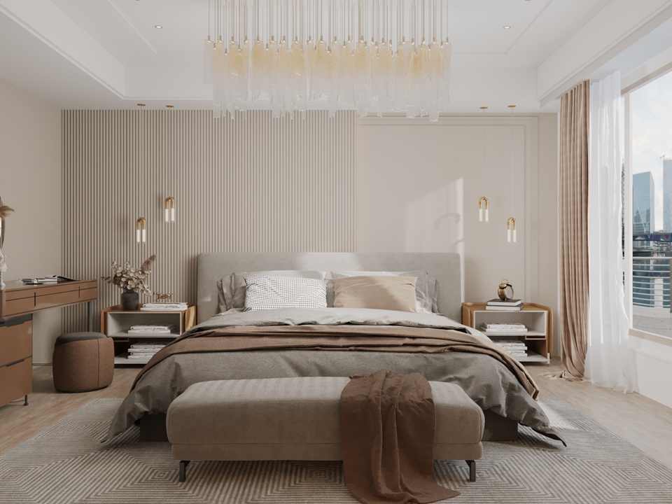 طراحی داخلی اتاق خواب بیش از زیبایی، فضای آرام و کاربردیای فراهم میکند که کیفیت خواب و سلامت روان را بهبود میبخشد.ترکیب نورپردازی مناسب، رنگهای ملایم و چیدمان هوشمندانه باعث افزایش حس آرامش و بهرهوری در فضای شخصی میشود.استفاده از بافتها و متریالهای طبیعی به ایجاد گرما و عمق در فضا کمک میکند و فضای شخصی را دلپذیرتر میسازد.توجه به جزئیات مانند ذخیرهسازی هوشمند و لوازم تکمیلی، کارایی را افزایش داده و تجربهی روزمره را بهبود میبخشد.